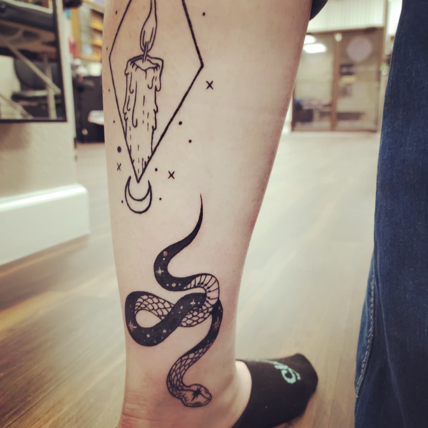 Chelsea Winter Burr On Twitter Sixth Tattoo Learning A Lot And Loving It Snake Snakes Tattoo Tattoos Tattooart Tattooartist Tattooedwoman Tattoodesign Apprentice Lineart Flash Serpent Legtattoo Leg Witchy Modernwitch